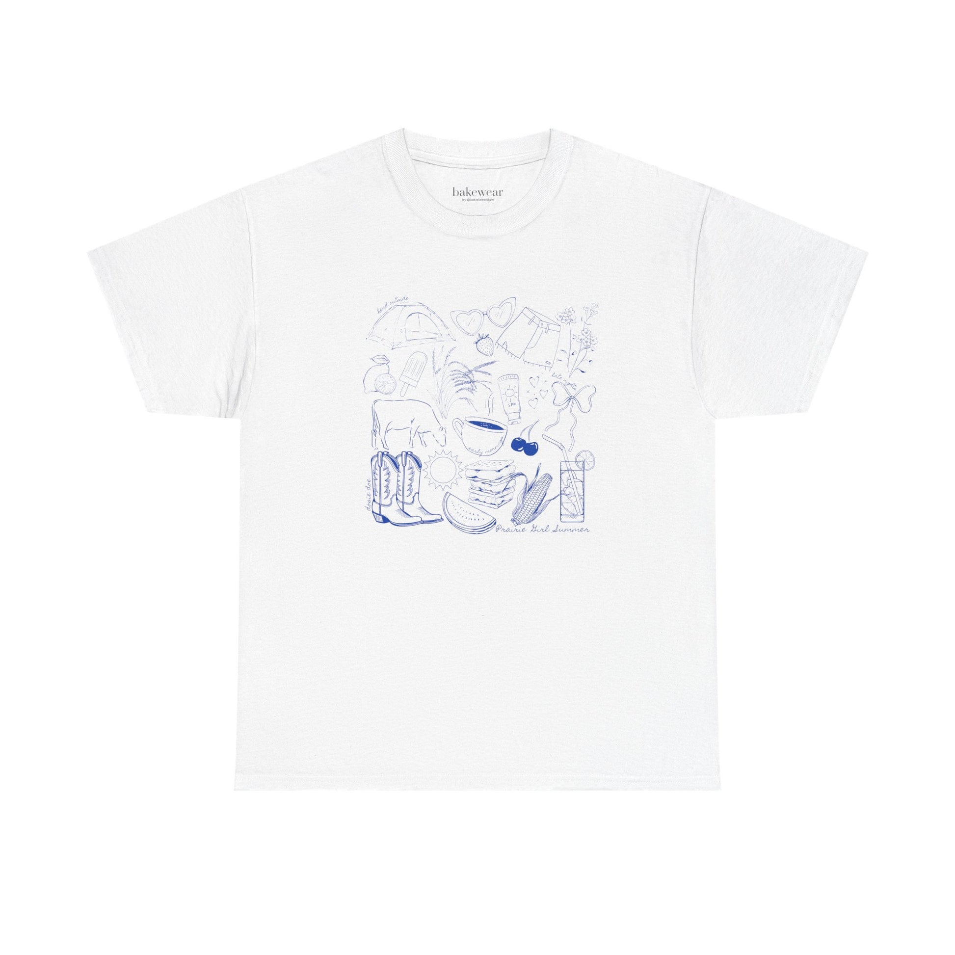 This tee feels like a summer Saturday—easygoing, sun-soaked, and full of charm. Featuring hand-drawn sketches of prairie girl essentials (think cowboy boots, wildflowers, strawberries, and sunnies), it’s made to celebrate the sweet, slow days of the season.